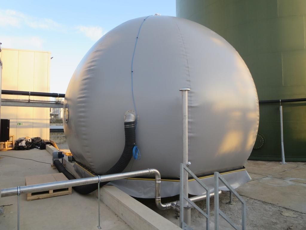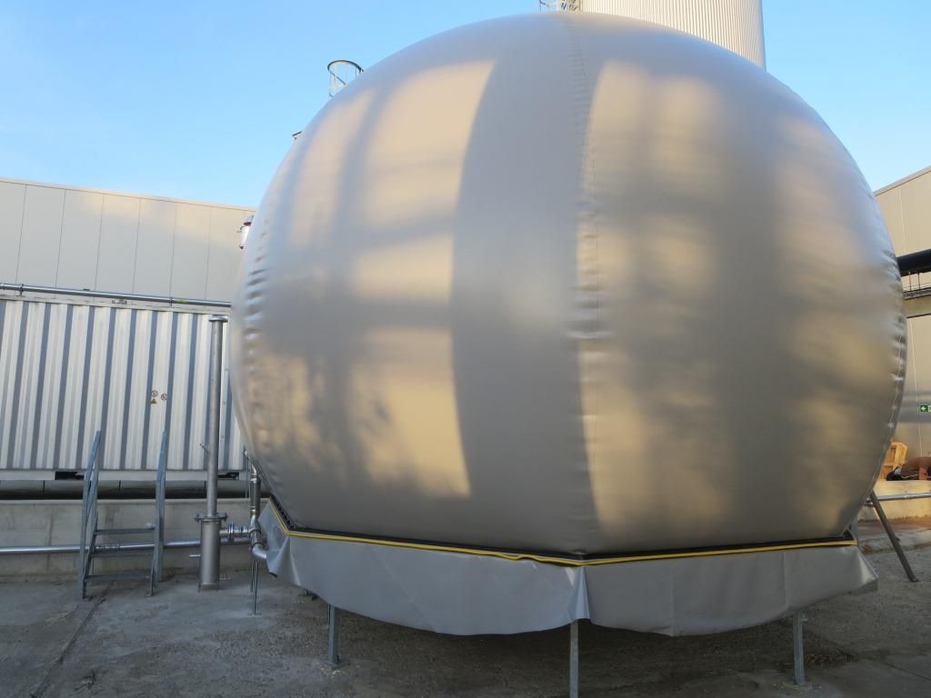 Ein neuer 100m³ Doppelmembrangasspeicher mit Stahlkonstruktion.